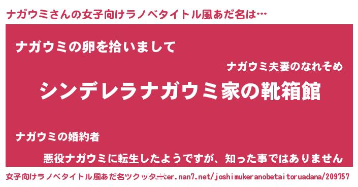 | 胡散臭い通販商品みたいなあだ名 | 『信頼と実績のサプリメント…その名も「ナガウミ」』 |