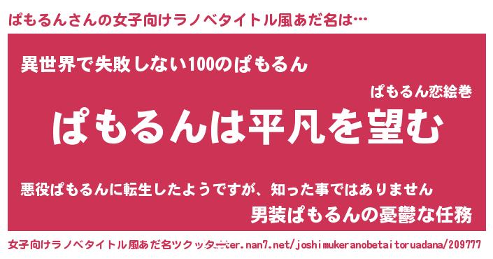 | 男性向けラノベタイトル風あだ名 | 『ダンジョンにぱもるんを求めるのは間違っているだろうか』 |