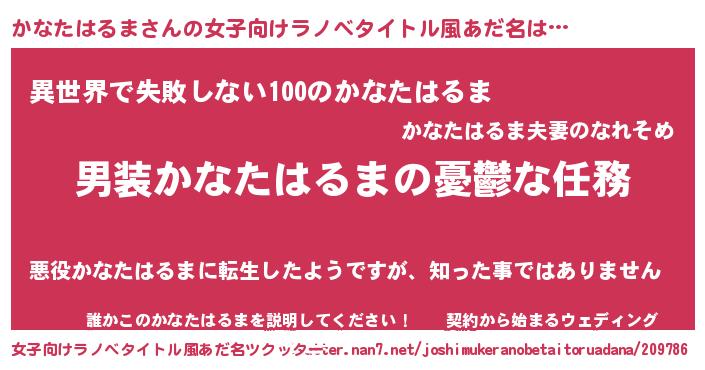 | 意味不明あだ名 | 『永久保存かなたはるま』 |