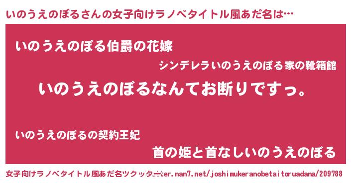 | 意味不明あだ名 | 『自称いのうえのぼる』 |
