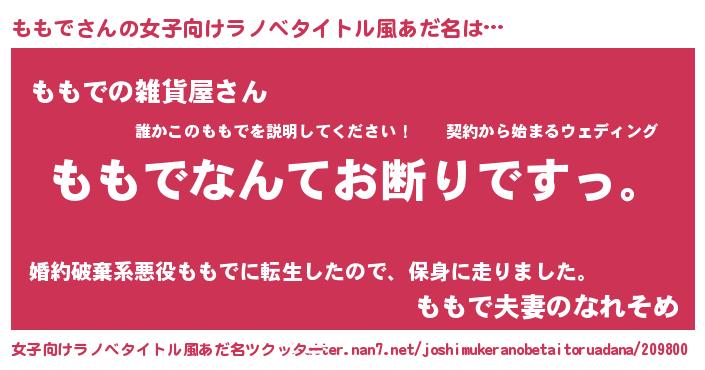 | ヒーロー風カッコイイあだ名 | 『超時空戦士モモデ』『天空の使者ももで』 |