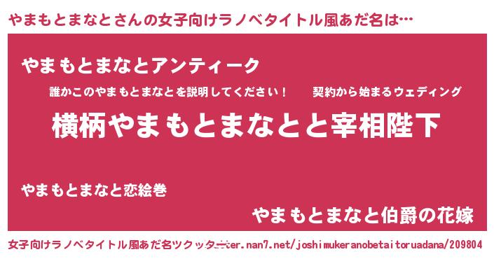 | 男性向けラノベタイトル風あだ名 | 『やまもとまなとに滅ぼされるだけの簡単なお仕事です』 |