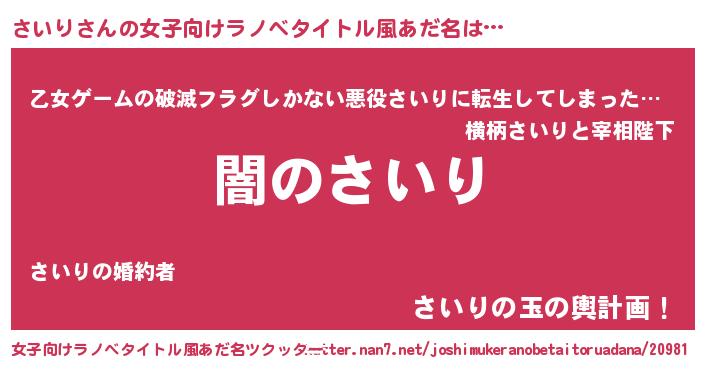 | 胡散臭い通販商品みたいなあだ名 | 『テレビで話題の高麗人参…その名も「さいり」』 |