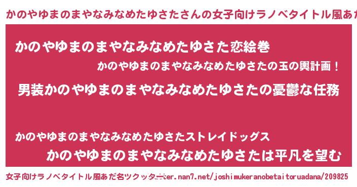 | ヒーロー風カッコイイあだ名 | 『愛の使者かのやゆまのまやなみなめたゆさた』 |