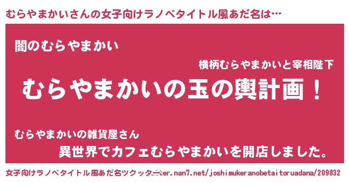 | 男性向けラノベタイトル風あだ名 | 『転生したらむらやまかいだった件』 |