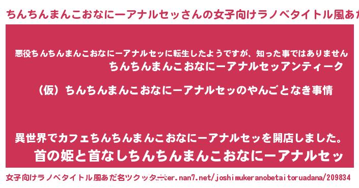 | 男性向けラノベタイトル風あだ名 | 『ちんちんまんこおなにーアナルセッの憂鬱』 |