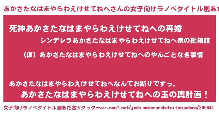 | 欧米人風あだ名 | 『マイケルあかさたなはまやらわえけせてねへ』 |