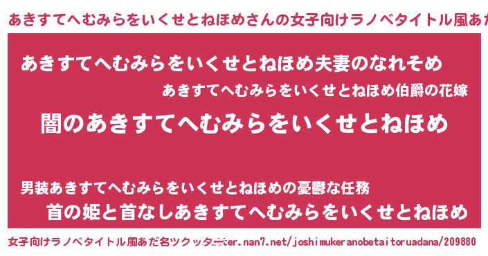 | 男性向けラノベタイトル風あだ名 | 『Re:あきすてへむみらをいくせとねほめから始める異世界生活』 |