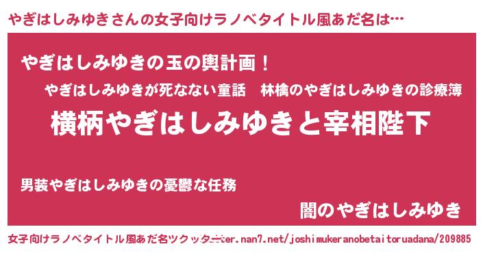 | 肩書あだ名 | 『やぎはしみゆきプロデューサー』 |