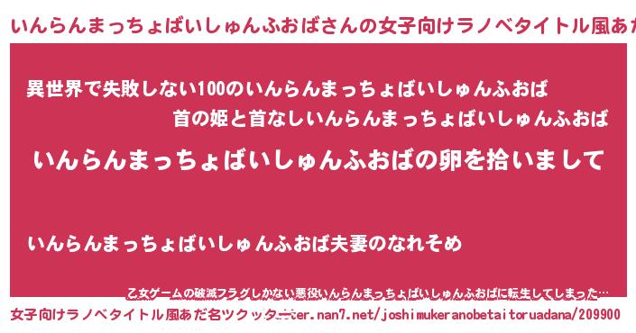 | 萌えアニメ | 主人公(いんらんまっちょばいしゅんふおば)のあだ名『 いんぴょん』 |