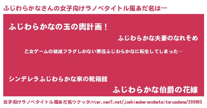 | 胡散臭い通販商品みたいなあだ名 | 『世界中を虜にした100年もののヴィンテージワイン…その名も「ふじわらかな」』 |
