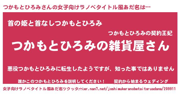 | 男性向けラノベタイトル風あだ名 | 『やはりつかもとひろみの青春ラブコメはまちがっている 』 |