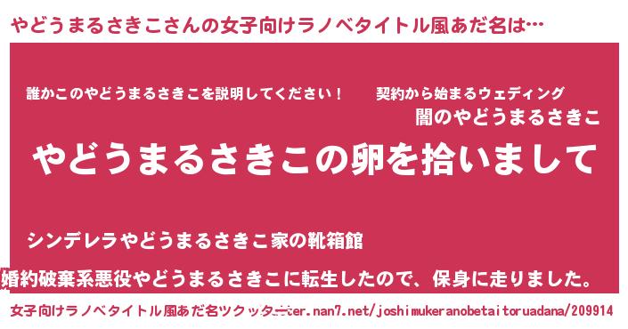 | 意味不明あだ名 | 『とにかく怪しいやどうまるさきこ』 |