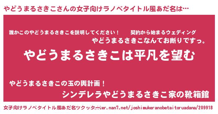 | 男性向けラノベタイトル風あだ名 | 『ダンジョンにやどうまるさきこを求めるのは間違っているだろうか』 |
