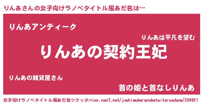 | 男性向けラノベタイトル風あだ名 | 『りんあという概念が存在しない退屈な世界 』 |
