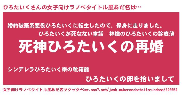 | 男性向けラノベタイトル風あだ名 | 『ノーゲーム・ノーヒロタイク』 |