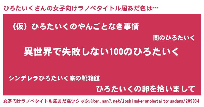 | 男性向けラノベタイトル風あだ名 | 『ひろたいくという概念が存在しない退屈な世界 』 |