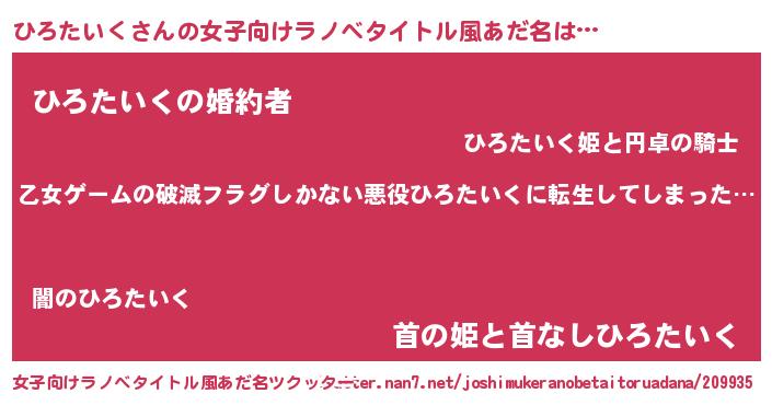 | ピコ太郎風あだ名 | 『ピヒ太郎』『ヒコ太郎』『ヒロ二郎』 |