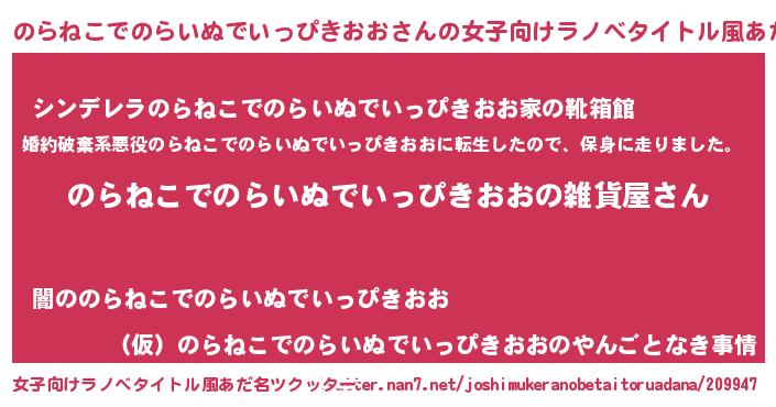 | 男性向けラノベタイトル風あだ名 | 『やはりのらねこでのらいぬでいっぴきおおの青春ラブコメはまちがっている 』 |