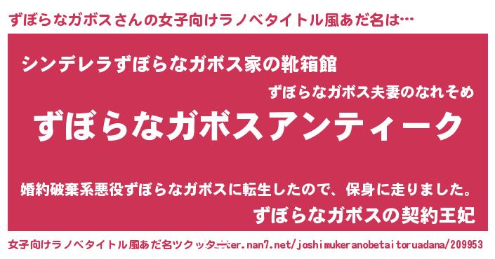 | 意味不明あだ名 | 『自称ずぼらなガボス』 |