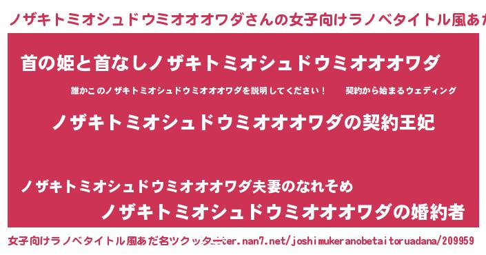 | 男性向けラノベタイトル風あだ名 | 『誰もが恐れるあのノザキトミオシュドウミオオオワダが、ぼくの専属メイドになるようです。』 |