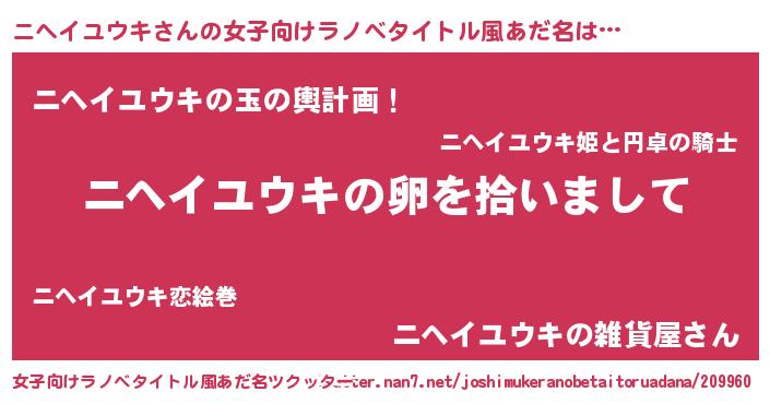 | ポケモン風あだ名 | 『ヒニヘイユウキ』『ニヘキング』 |