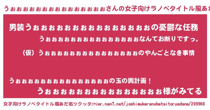 | 男性向けラノベタイトル風あだ名 | 『うぉぉぉぉぉぉぉぉぉぉぉぉぉぉぉの憂鬱』 |