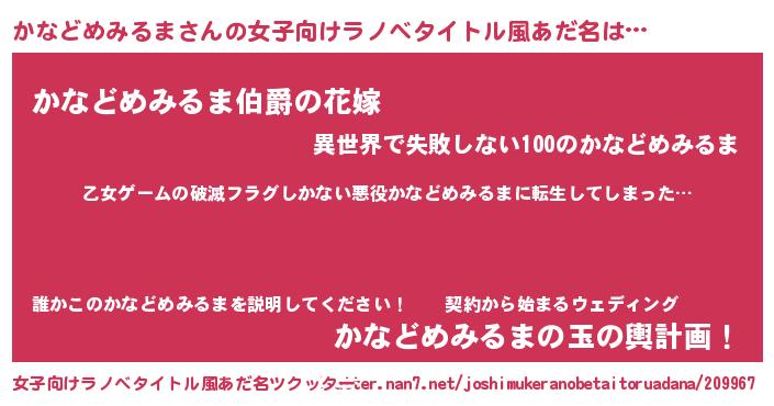 | 胡散臭い通販商品みたいなあだ名 | 『世界中を虜にした100年もののヴィンテージワイン…その名も「かなどめみるま」』 |