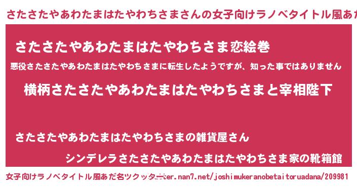 | 欧米人風あだ名 | 『アンジェラ・さたさたやあわたまはたやわちさま』 |