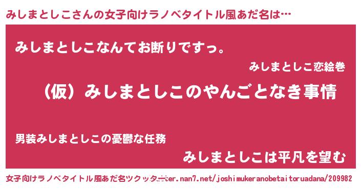 | 男性向けラノベタイトル風あだ名 | 『みしまとしこの憂鬱』 |