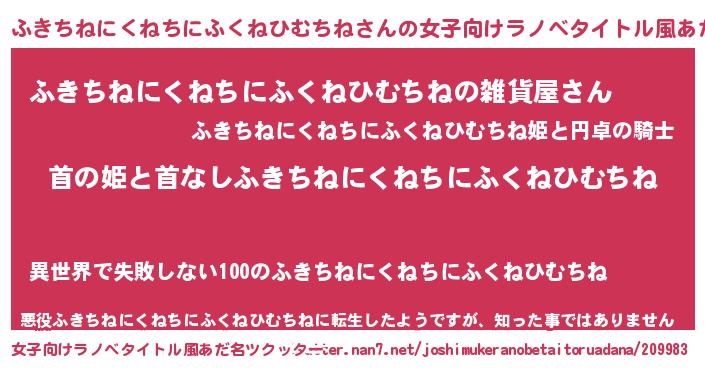 | 欧米人風あだ名 | 『アンジェラ・ふきちねにくねちにふくねひむちね』 |