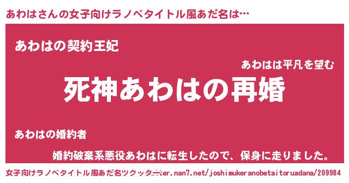 | 男性向けラノベタイトル風あだ名 | 『ノーゲーム・ノーアワハ』 |