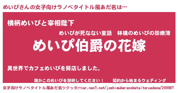 | 欧米人風あだ名 | 『めいぴクリステル』『マイケルめいぴ』 |