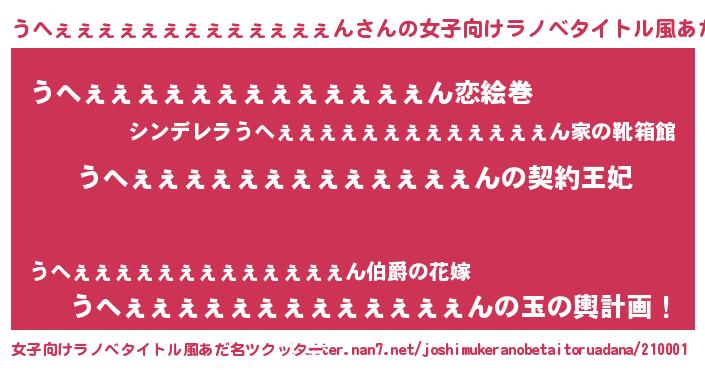 | 男性向けラノベタイトル風あだ名 | 『誰もが恐れるあのうへぇぇぇぇぇぇぇぇぇぇぇぇぇんが、ぼくの専属メイドになるようです。』 |