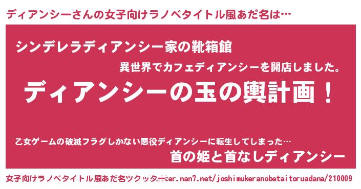 | 男性向けラノベタイトル風あだ名 | 『ディアンシー~年齢イコール彼女いない歴の魔法使い~』 |