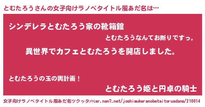 | 胡散臭い通販商品みたいなあだ名 | 『前代未聞の健康食品…その名も「とむたろう」』 |