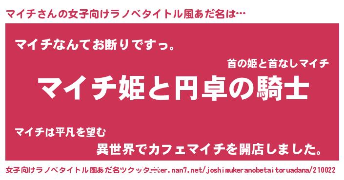 | 男性向けラノベタイトル風あだ名 | 『マイチアートオンライン』 |