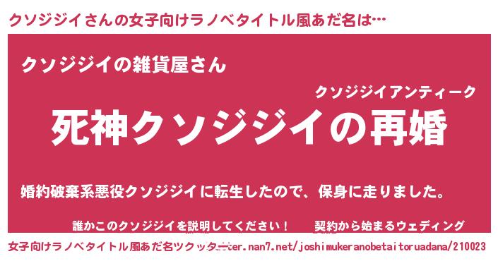 | 男性向けラノベタイトル風あだ名 | 『ノーゲーム・ノークソジジイ』 |