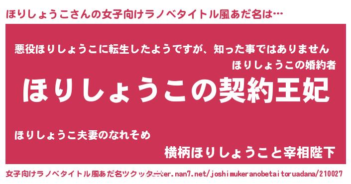 | 意味不明あだ名 | 『永久保存ほりしょうこ』 |