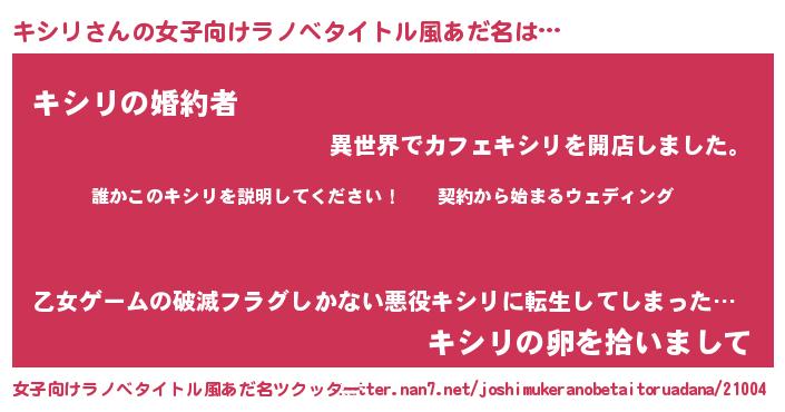| 胡散臭い通販商品みたいなあだ名 | 『億万長者になれるブレスレット…その名も「キシリ」』 |