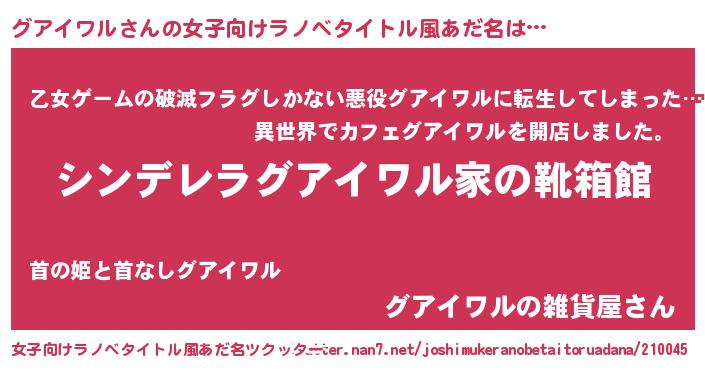 | 意味不明あだ名 | 『住所不定無職グアイワル(95歳)』 |