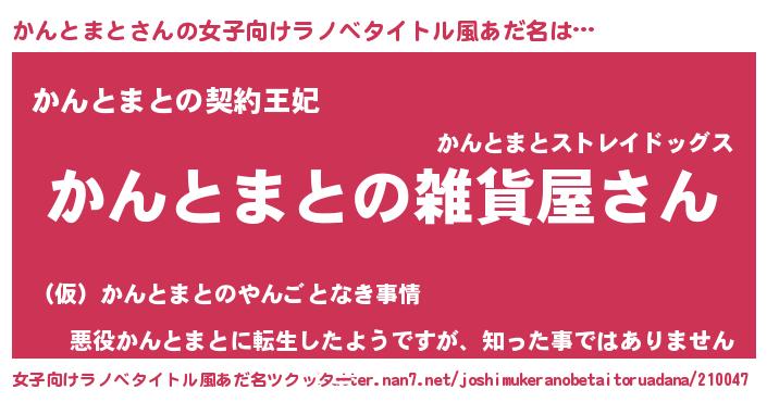 | 男性向けラノベタイトル風あだ名 | 『やはりかんとまとの青春ラブコメはまちがっている 』 |