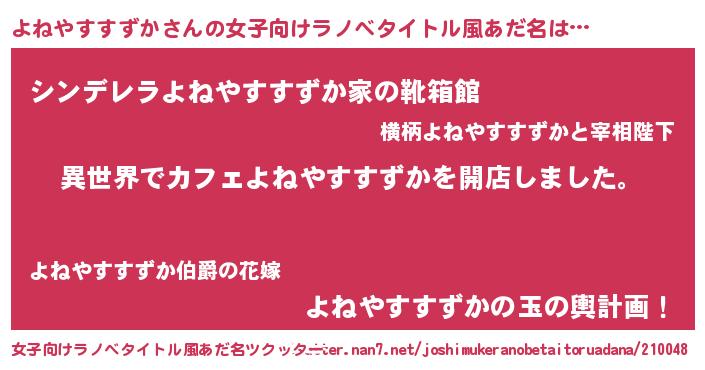 | 男性向けラノベタイトル風あだ名 | 『誰もが恐れるあのよねやすすずかが、ぼくの専属メイドになるようです。』 |