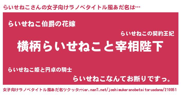 | 小説 | 最初の1行『らいせねこ「真夜中は、なぜこんなにもきれいなんだろうと思う。」』 |