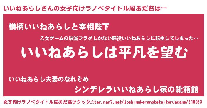 | 男性向けラノベタイトル風あだ名 | 『ダンジョンにいいねあらしを求めるのは間違っているだろうか』 |