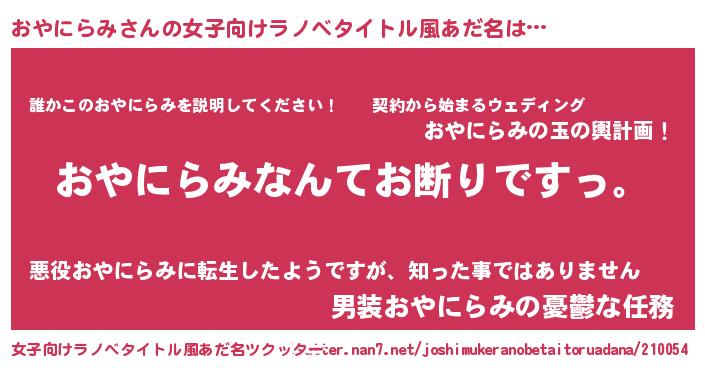 | ヘコむあだ名 | 『おやにー』『おやっ子』『なまこ酢』 |