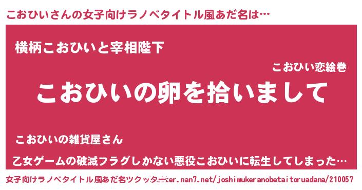 | 男性向けラノベタイトル風あだ名 | 『こおひいの嫁は女の子じゃないと思った?』 |