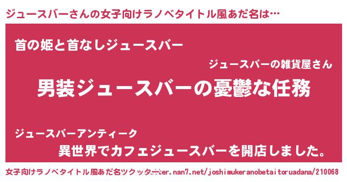 | 意味不明あだ名 | 『永久保存ジュースバー』 |