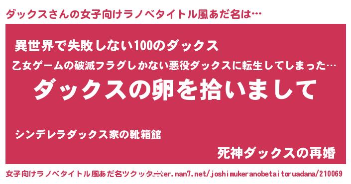| 男性向けラノベタイトル風あだ名 | 『ダンジョンにダックスを求めるのは間違っているだろうか』 |
