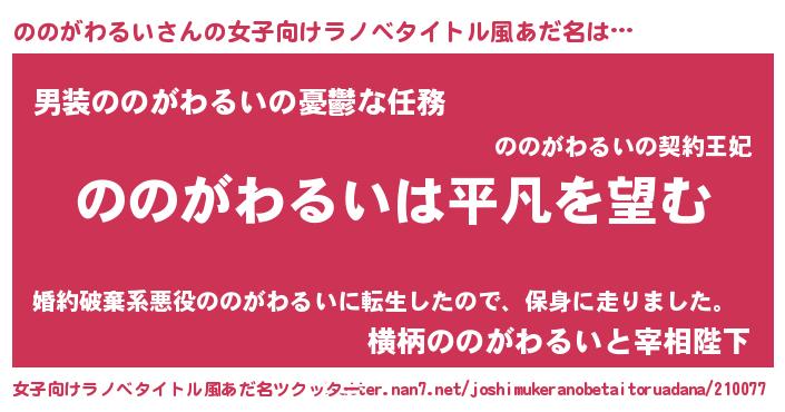 | 男性向けラノベタイトル風あだ名 | 『ダンジョンにののがわるいを求めるのは間違っているだろうか』 |